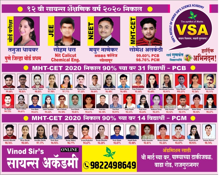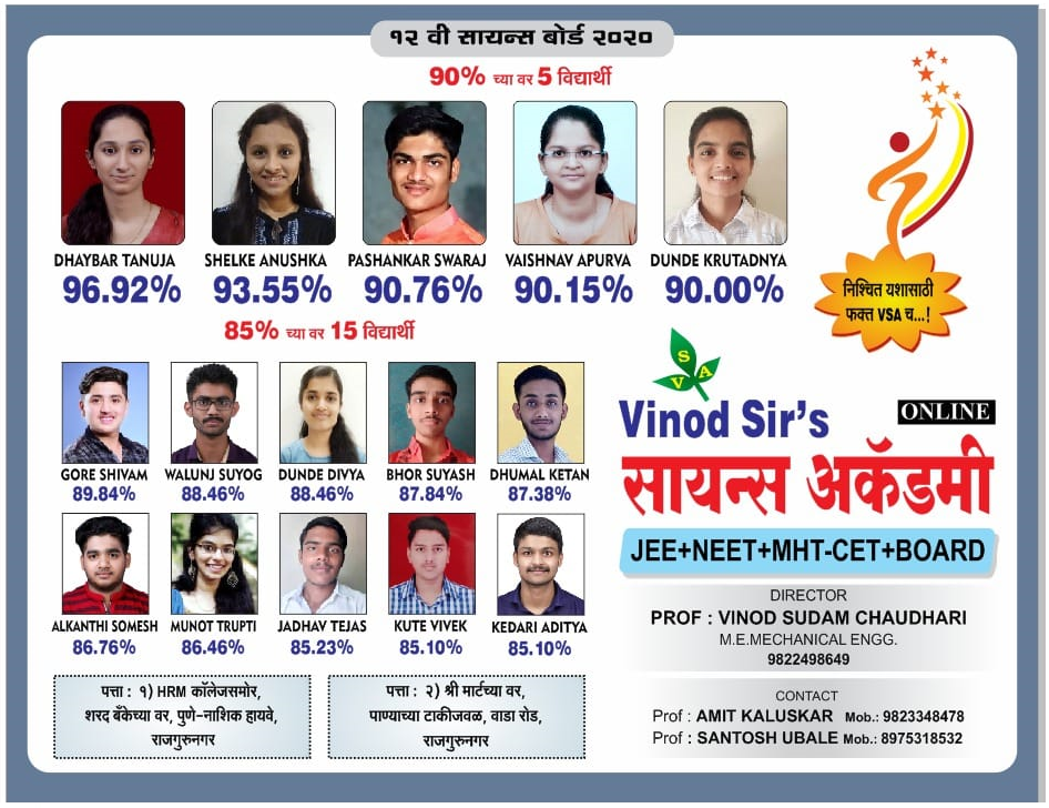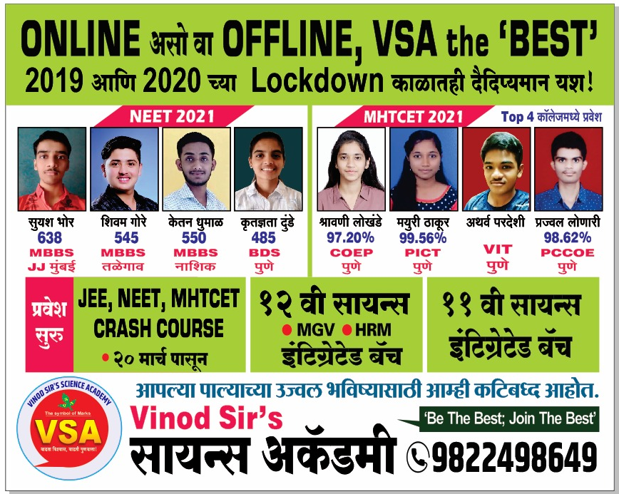 Trust your instincts!! The best way to narrate my whole experience till I get into my dream clg 'COEP'. In this, besides me the most imp part was played by my parents and VSA team and yes unexpectedly the online education. VSA has every teacher with it's own special significance. Even online education was taken asa best as offline. I would always thanks my parents and VSA Staff for holding back patience in me during lockdown times. For me this played a big role to maintain consistency in studies during the uncertainty in exam scheduled. Probably everything happens for best and my hardwork paid me off surprisingly! I always would be thankful to you for this Sir Best wishes to VSA and Vinod Sir for carrying forward this legacy of creating best